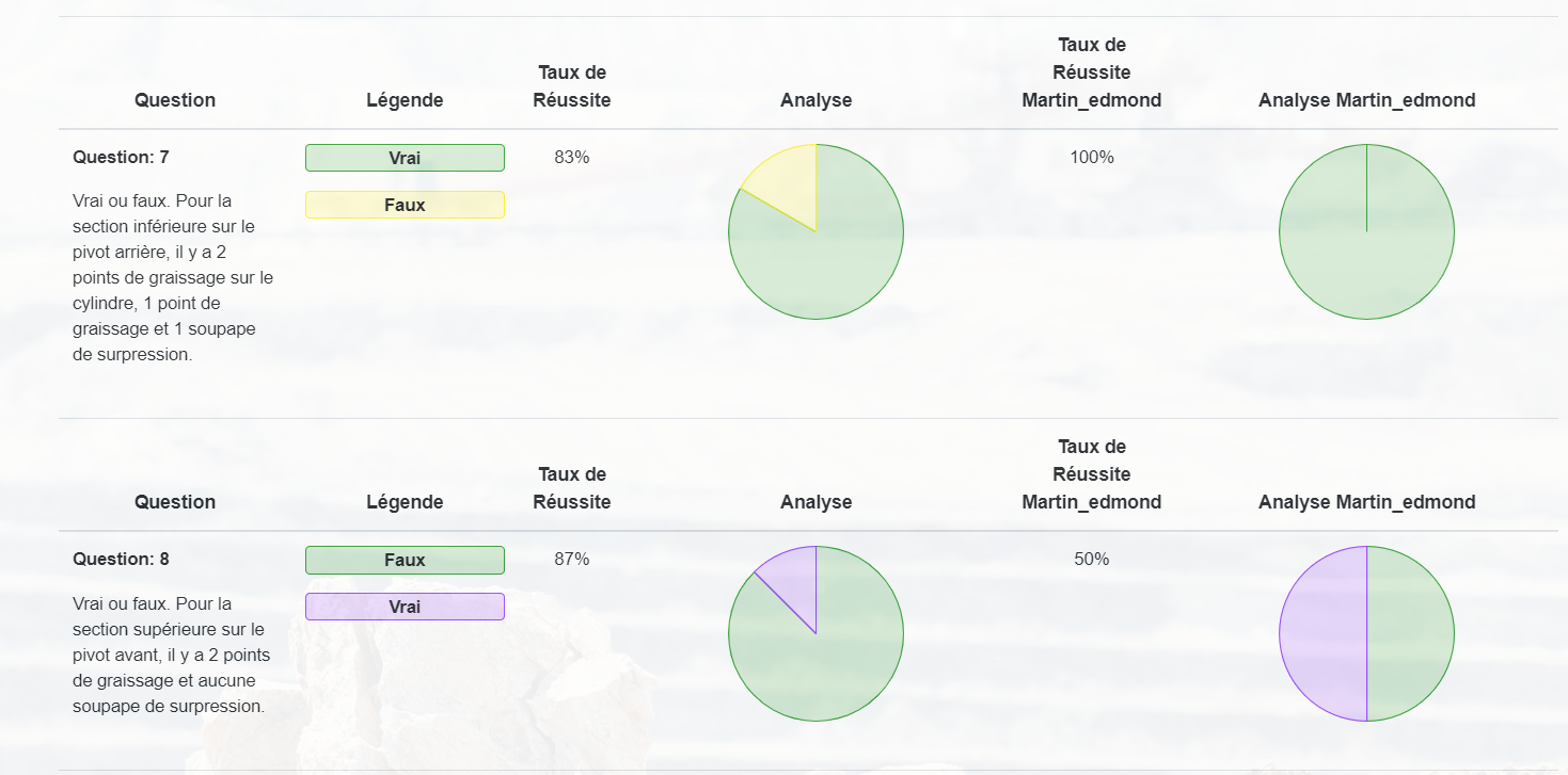 This shows what the result of the analysis could look like. It would who the question, what the choices workers had, percentage that got it right. In this example we could compare the result of worker in particular to the others