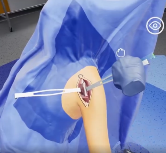 This shows a bit what pulling the muscle with instruments in VR after cutting through the skin